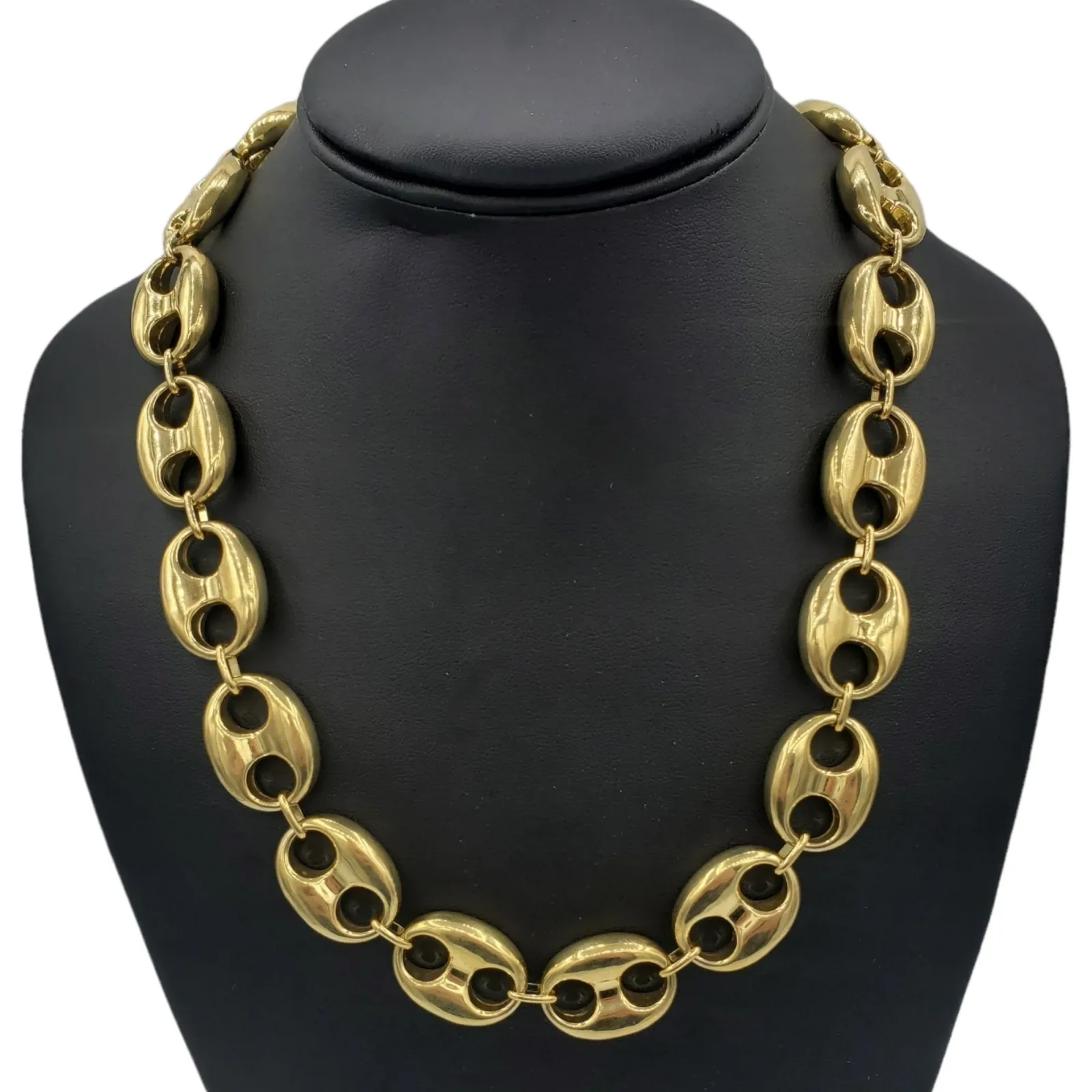 Cadena Marinero Puff Hueca en Oro 10K. Eslabones sólidos con acabado pulido brillante. Ideal para uso diario o como pieza de declaración. Hecha a mano en Miami.