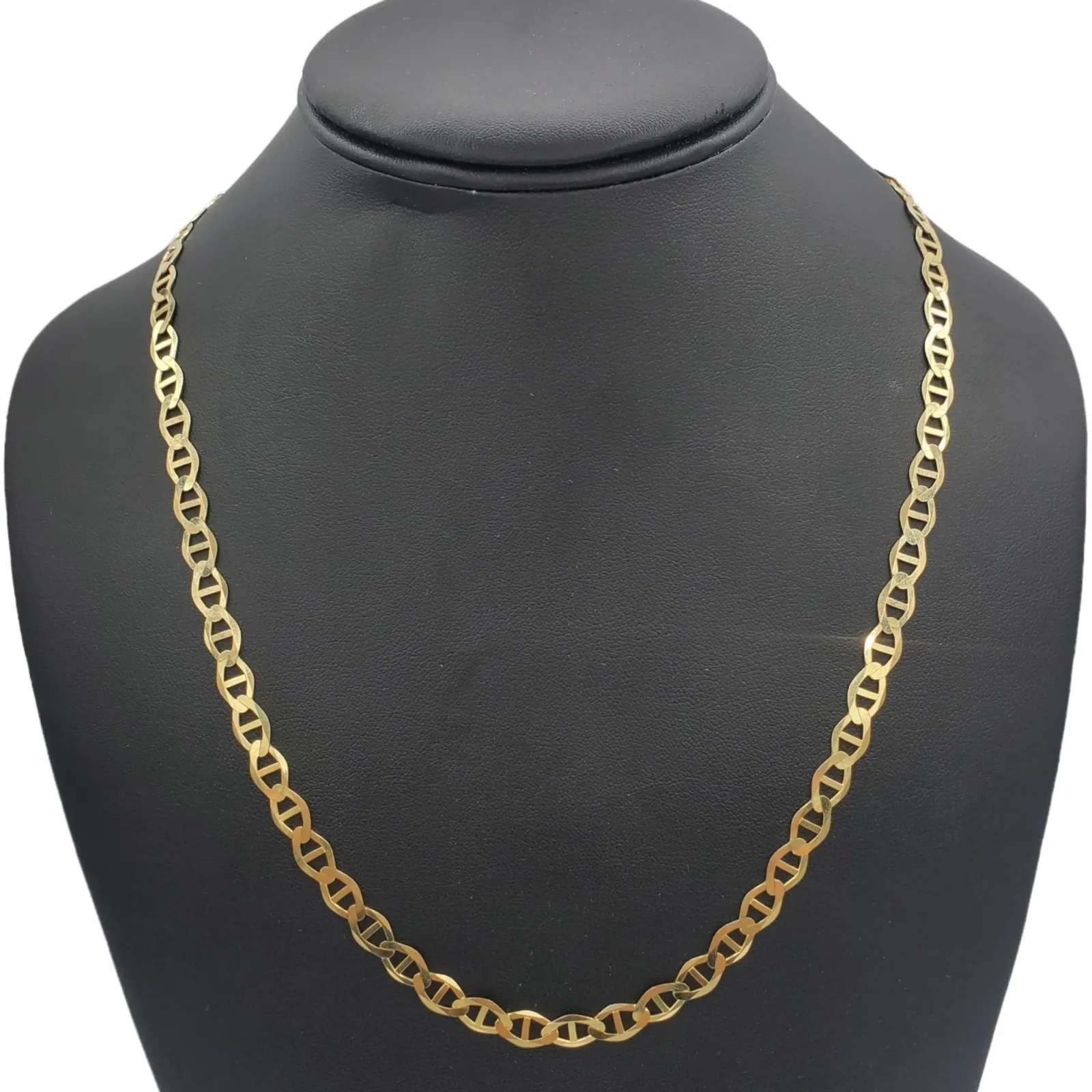 Discover the elegance of our Mariner Link Chain, meticulously crafted from 100% solid 10K yellow gold. Known for its strong and simple design, this chain features interlocking oval links with a bar across the center, creating a look that’s both stylish and timeless. Available in a selection of thicknesses for a customized fit, it’s a versatile addition to any jewelry collection. Key Features: Quality Construction: Forged from solid 10K yellow gold, ensuring a weighty feel and lasting durability. Sleek Design: The Mariner link, with its distinctive detailing, offers a blend of classic and nautical style. Width Options: Select from 4 mm, 5 mm, or 6 mm widths to find your perfect chain. Length Variety: Choose from lengths ranging from a close 16 inches to a more relaxed 24 inches. Secure Closure: Completed with a sturdy clasp to keep your chain secure and in place. Product Details: Feature Description Metal 100% Solid 10K Yellow Gold Design Mariner link with its iconic maritime-inspired look Widths Available in 4 mm, 5 mm, and 6 mm for a tailored look Lengths Range from 16 inches to 24 inches to suit various preferences Closure Reliable clasp for ease of mind Why Choose Our Mariner Link Chain? Adaptable Style: Perfect for daily wear or special events, it complements both casual and formal outfits. Lasting Investment: Solid gold ensures a timeless piece that retains value over time. Unisex Appeal: Suitable for all, it’s an ideal gift for anyone appreciating quality craftsmanship. Add a touch of sophistication to your wardrobe with our Solid Gold Mariner Link Chain, a statement of elegance and quality.