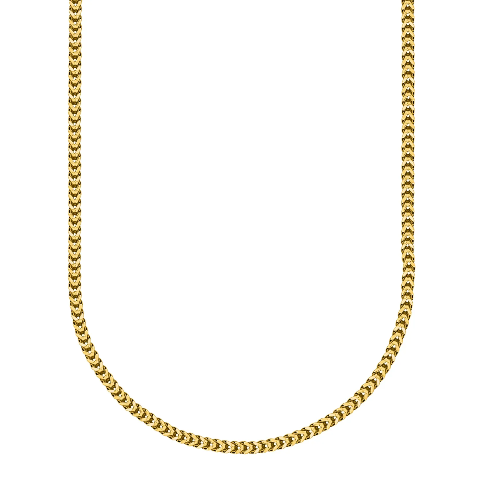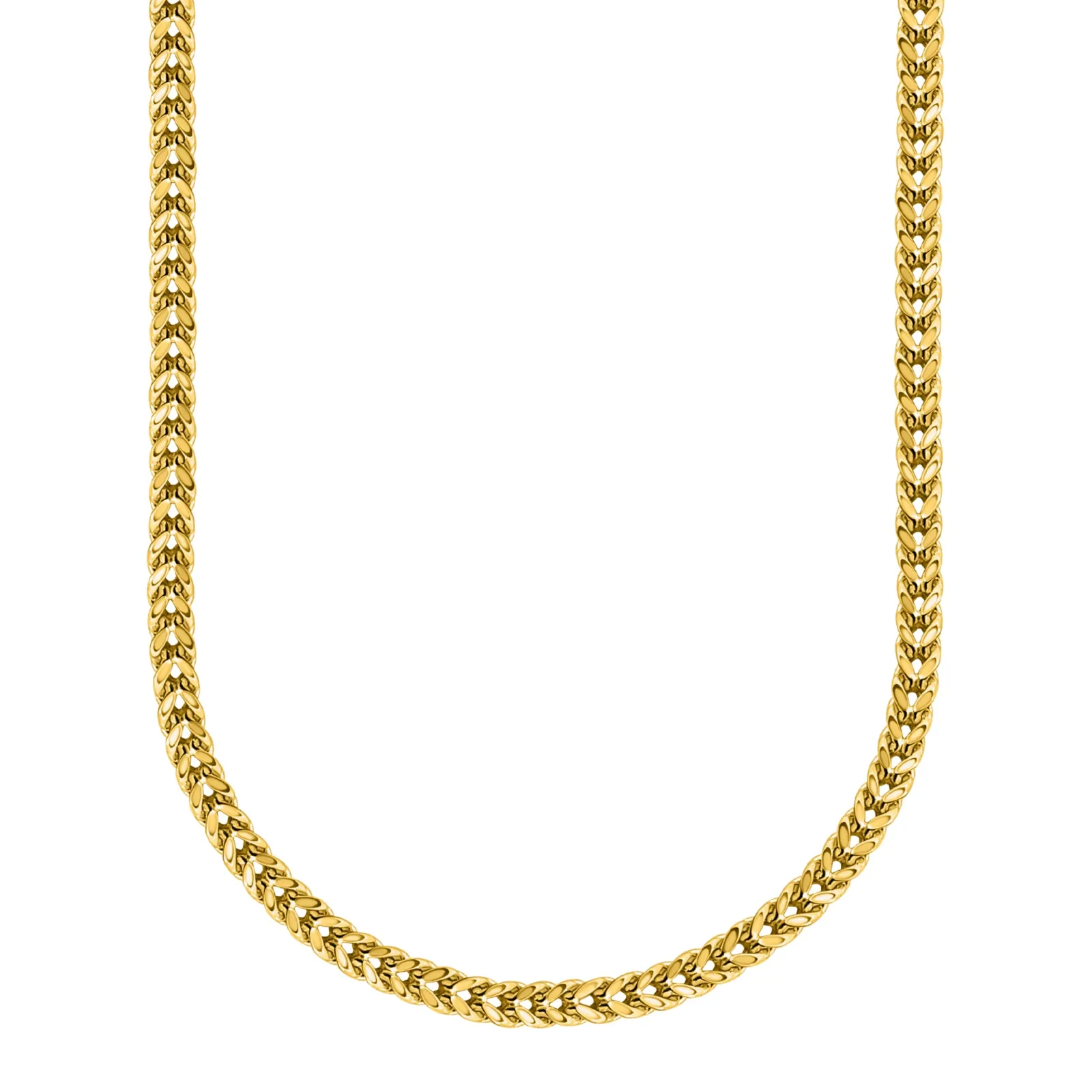 Classic 10K Yellow Gold Franco Link ChainSleek, strong, and refined — our 10K yellow gold Franco link chain offers a modern twist on traditional gold. Its tightly woven links create a clean, square pr