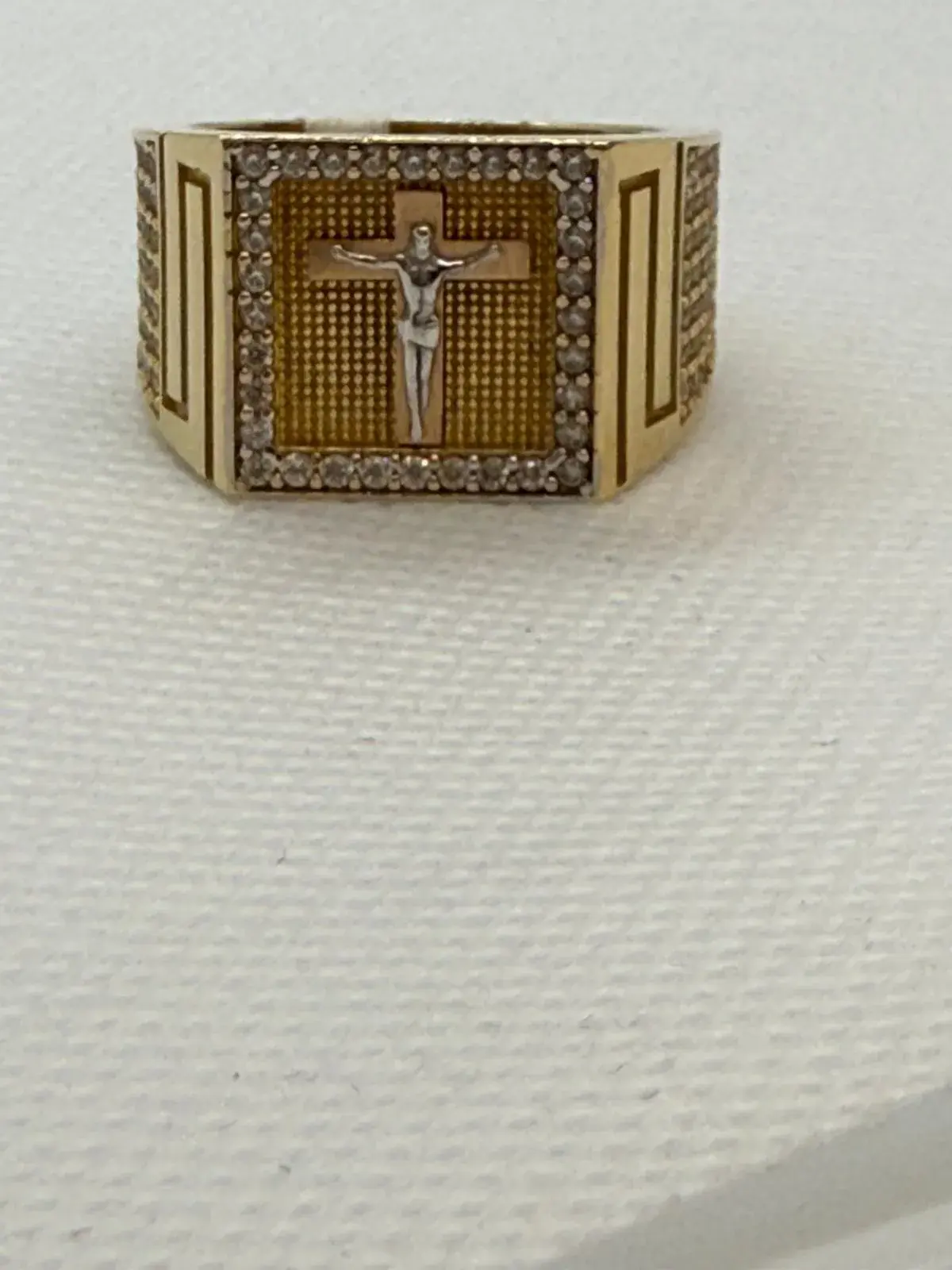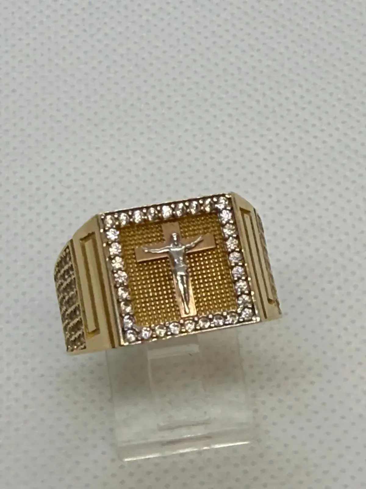 Anillo de Crucifijo en Oro 10K — anillo de diseño en oro 10K sólido con acabado pulido. Comodidad y elegancia para uso diario.