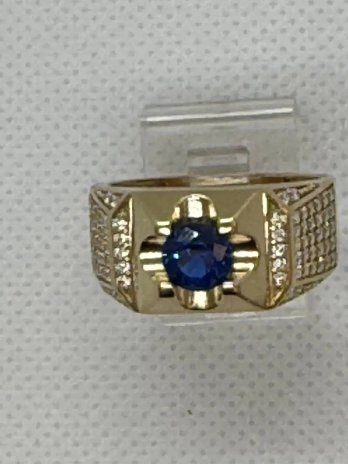Anillo de Piedra Azul Redondo en Oro 10K