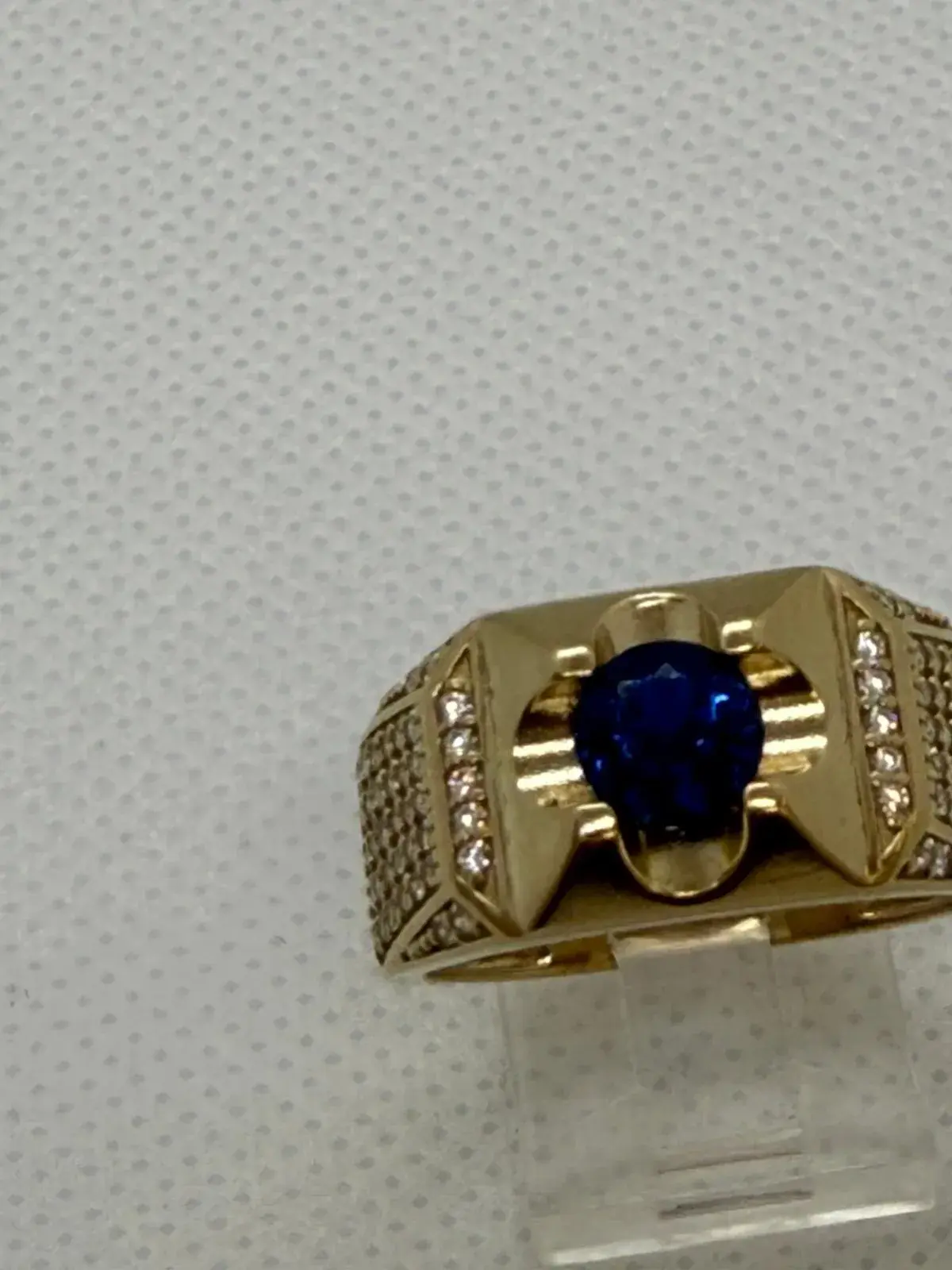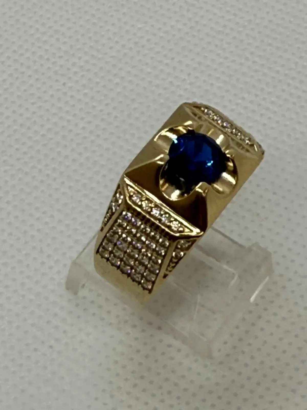 Anillo de Piedra Azul Redondo en Oro 10K — anillo de diseño en oro 10K sólido con acabado pulido. Comodidad y elegancia para uso diario.