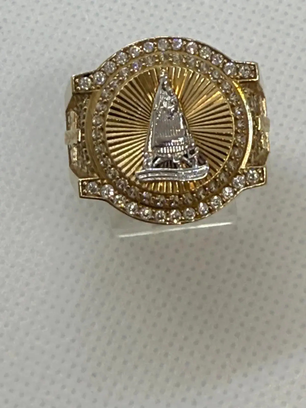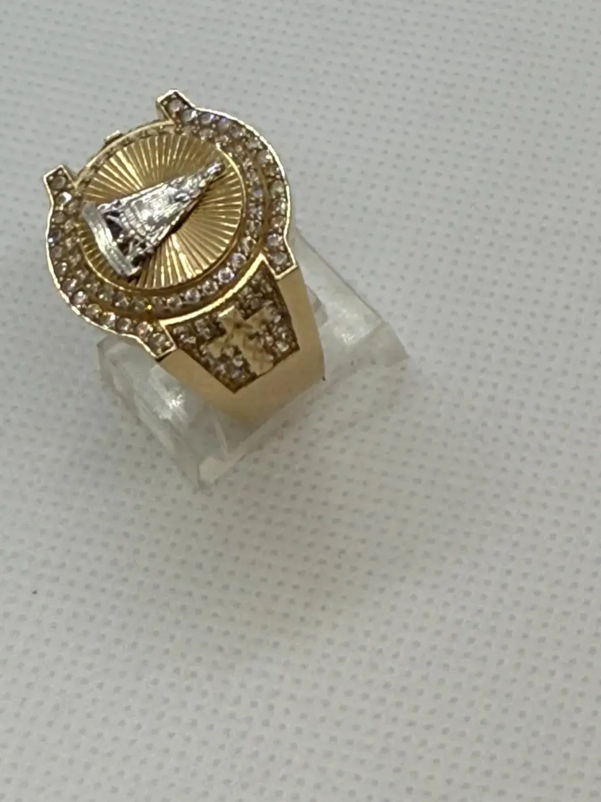 Anillo de Virgen de la Caridad en Oro 10K — anillo de diseño en oro 10K sólido con acabado pulido. Comodidad y elegancia para uso diario.
