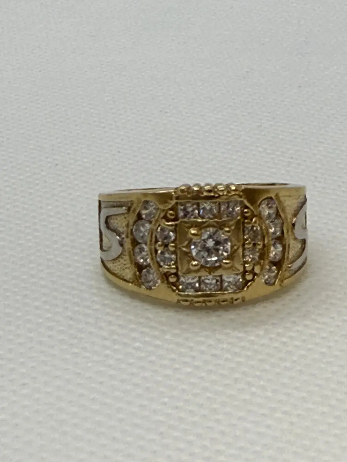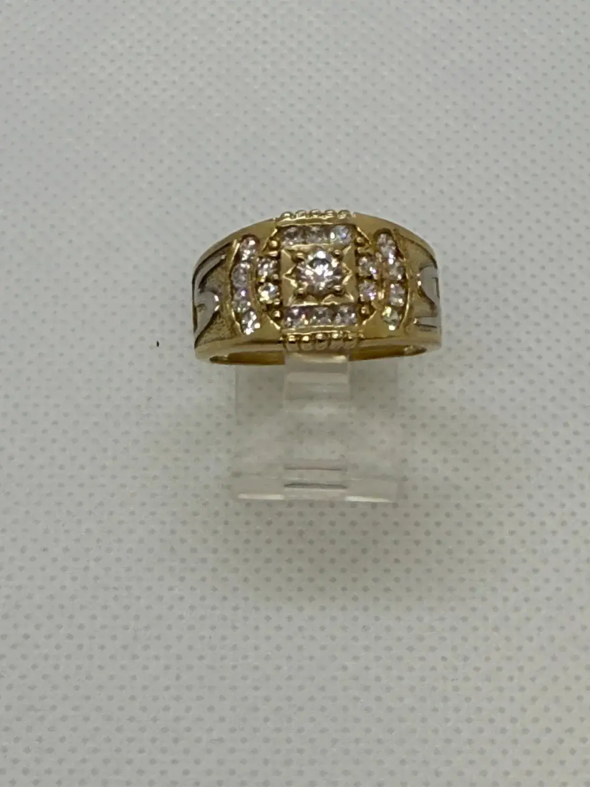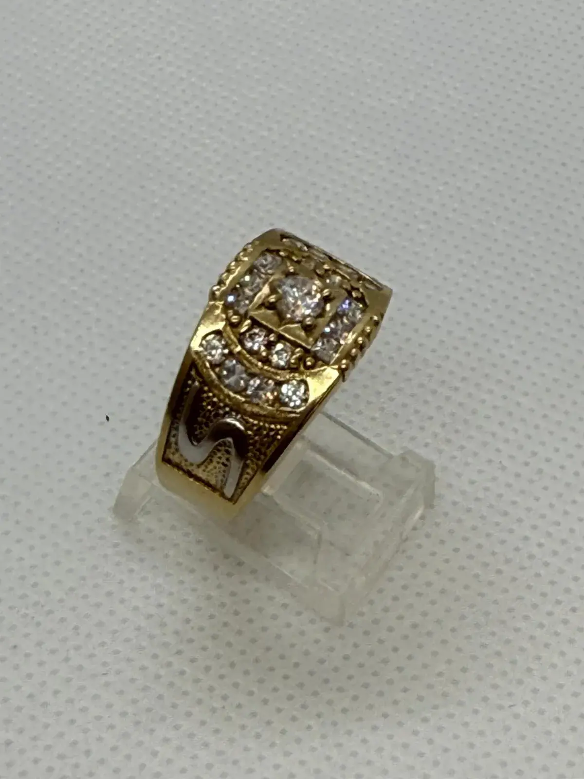 Anillo en Forma de Sello con Circonias en Oro 10K