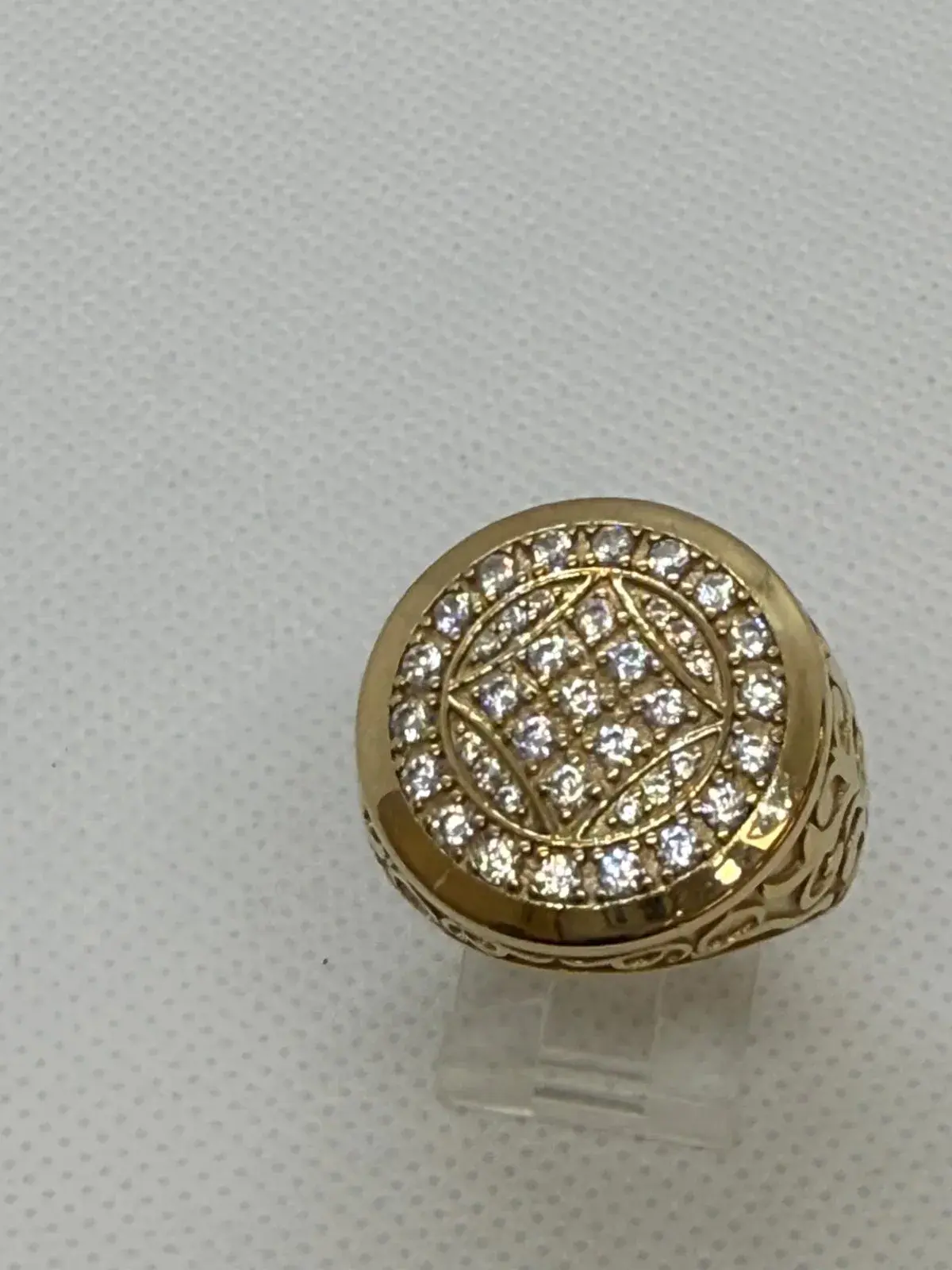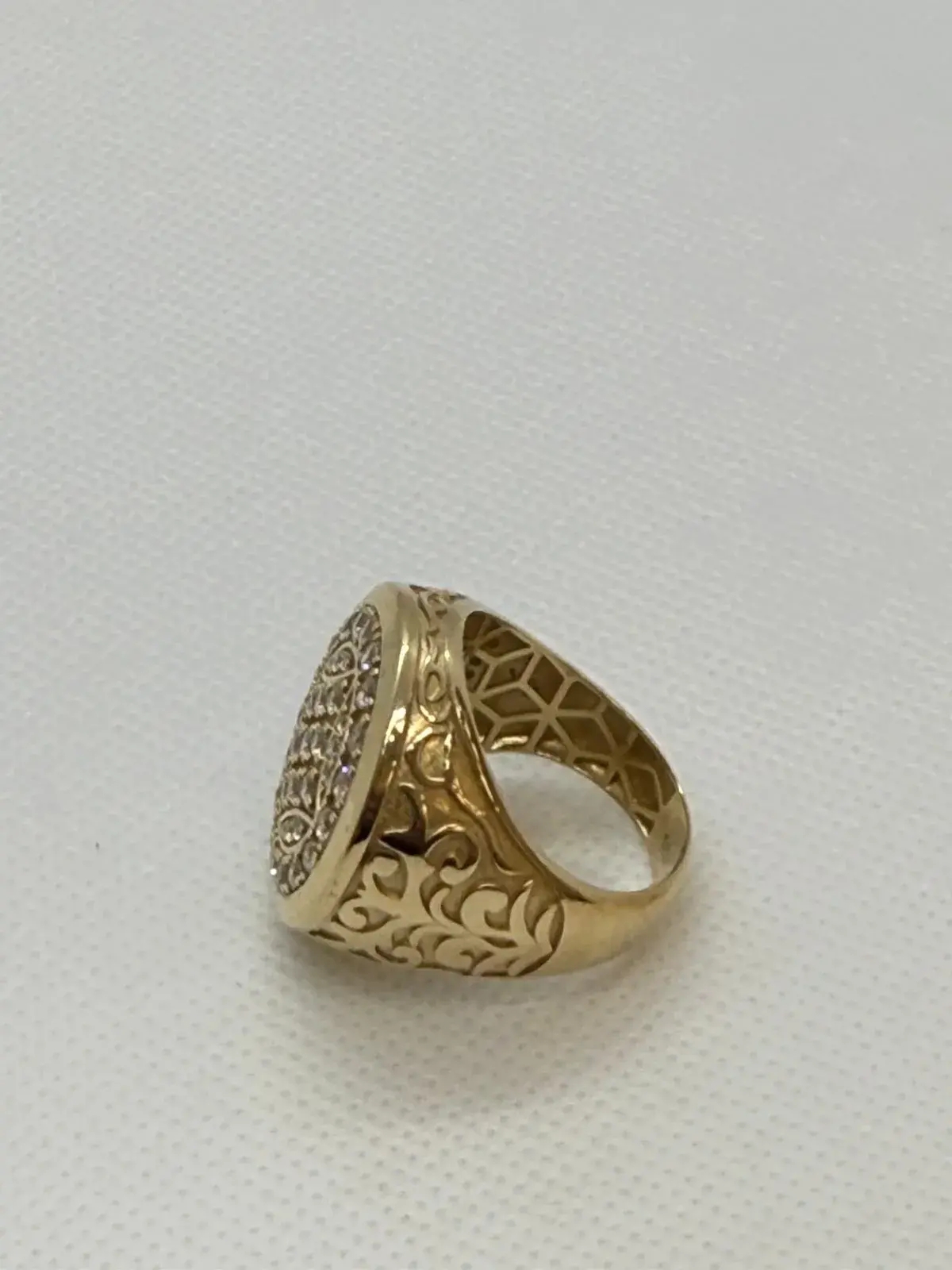 Anillo Roseta de Hombre Forma de Rombo Grande en Oro 10K — anillo de diseño en oro 10K sólido con acabado pulido. Comodidad y elegancia para uso diario.