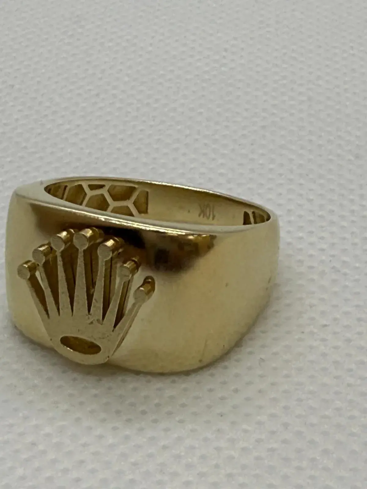 Anillo SÃmbolo Rolex Plano en Oro 10K — anillo de diseño en oro 10K sólido con acabado pulido. Comodidad y elegancia para uso diario.