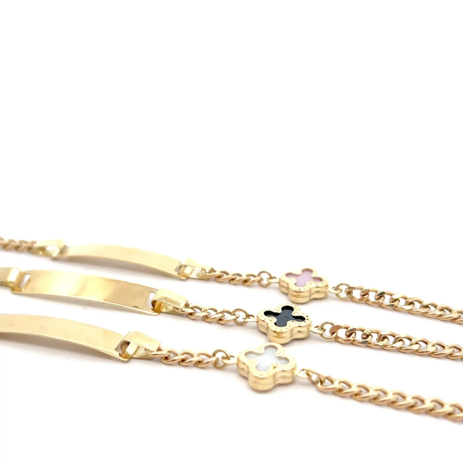 Pulso Baby V en Oro 10K. Eslabones sólidos con cierre seguro. Acabado pulido brillante. Ideal para uso diario. Hecho a mano en Miami.