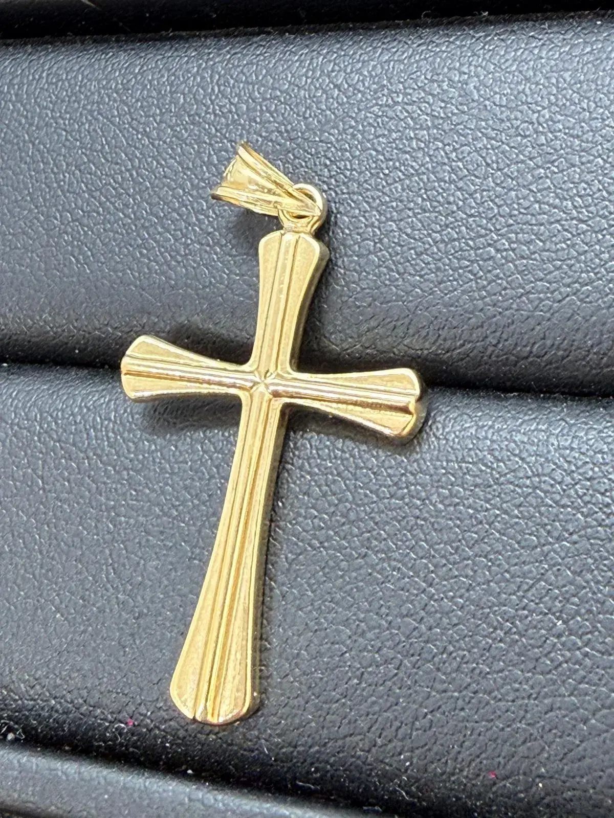 Dije de Cruz en Oro 10K — dije con diseño detallado en oro 10K sólido y acabado pulido brillante. Ideal para personalizar tu cadena favorita.