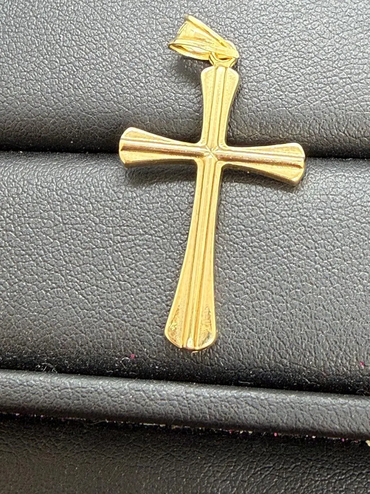 Dije de cruz con corte de brillo en oro de 10K con un peso de 1 gramo