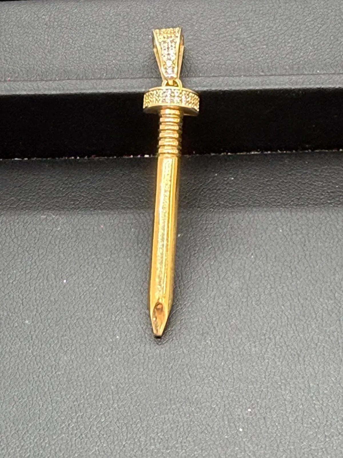 Dije de Clavo en Oro 10K — dije con diseño detallado en oro 10K sólido y acabado pulido brillante. Ideal para personalizar tu cadena favorita.