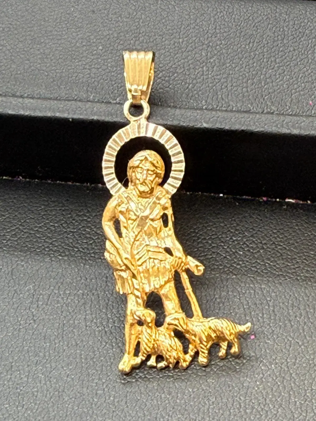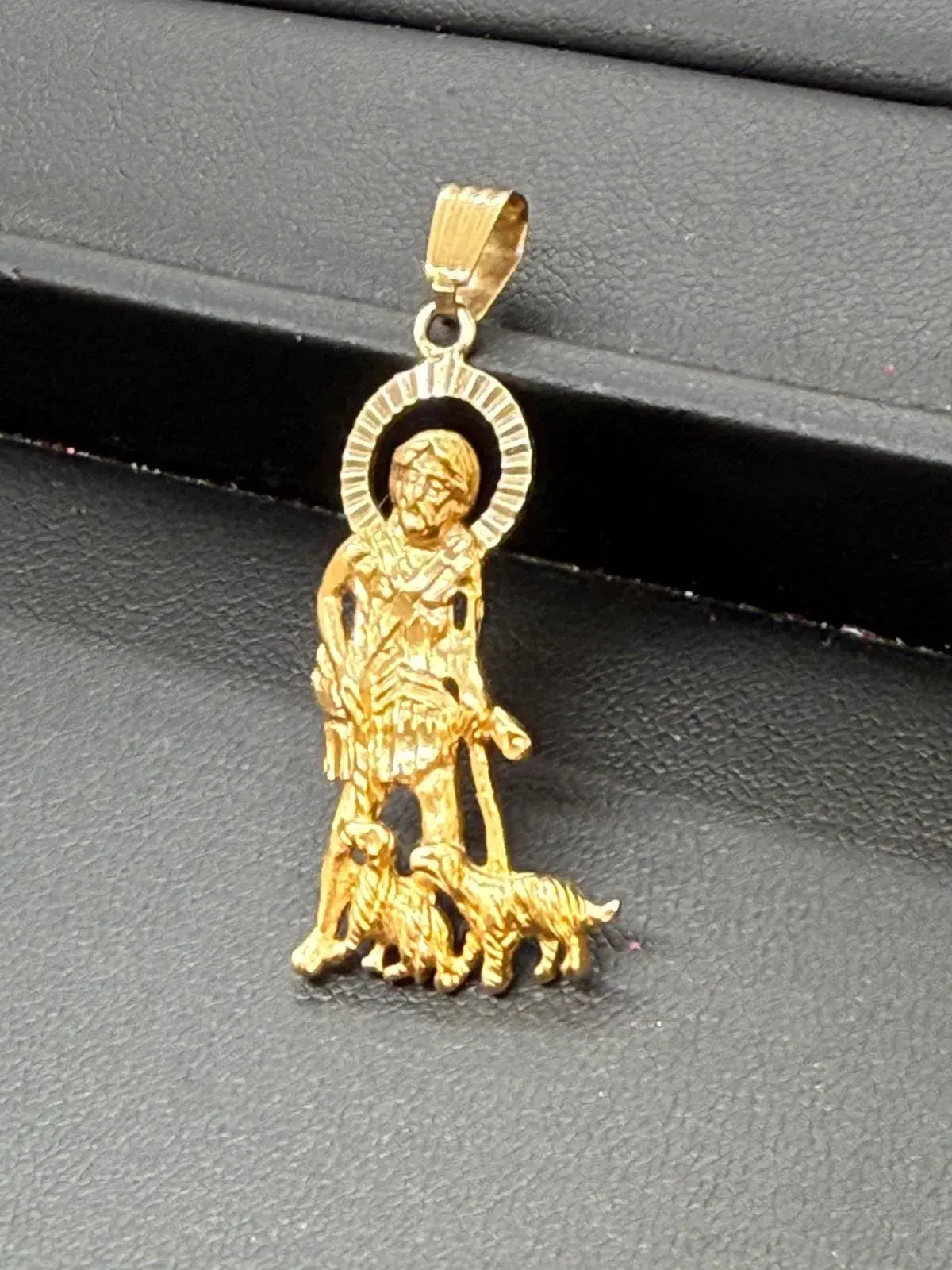 Dije de San Lázaro en Oro 10K — dije con diseño detallado en oro 10K sólido y acabado pulido brillante. Ideal para personalizar tu cadena favorita.