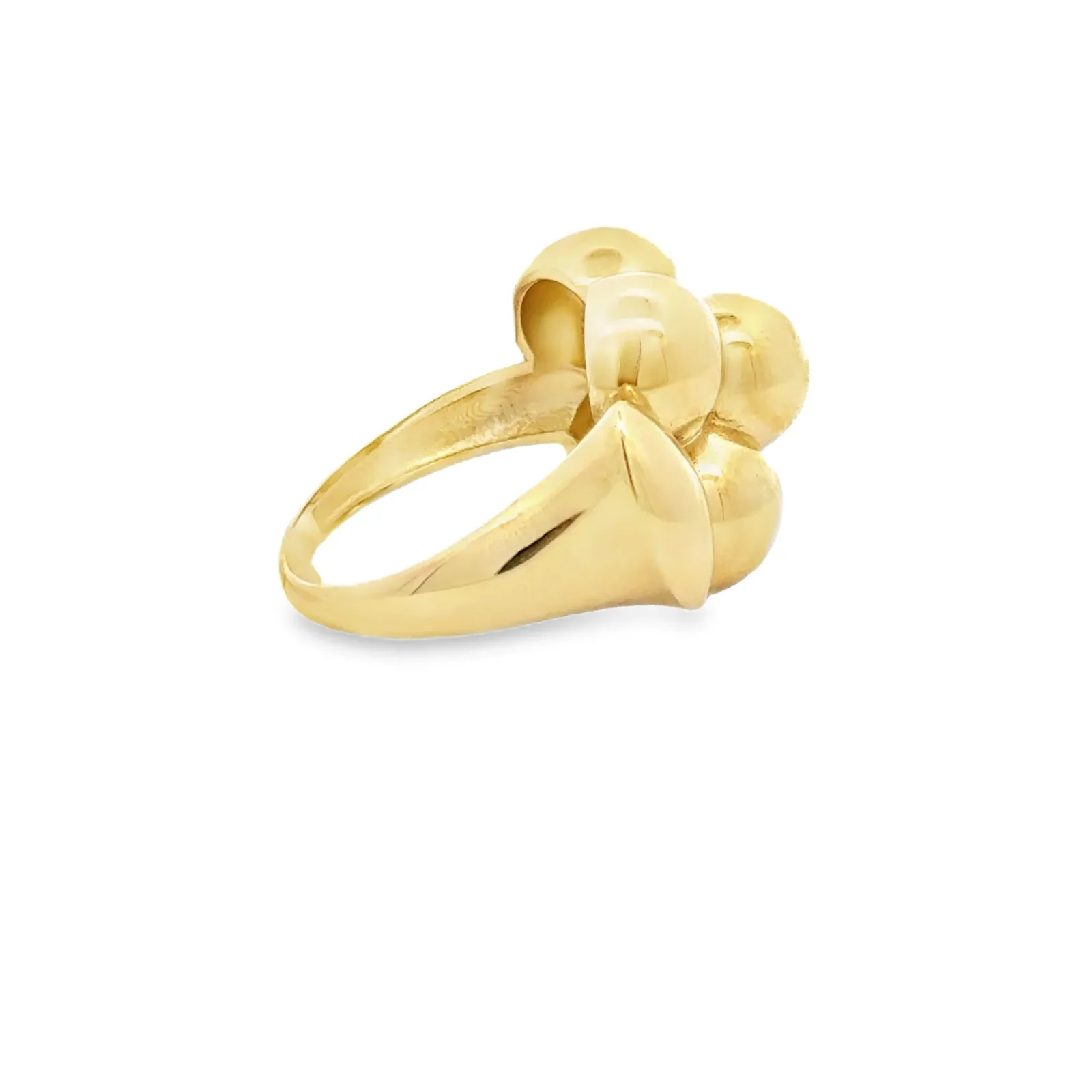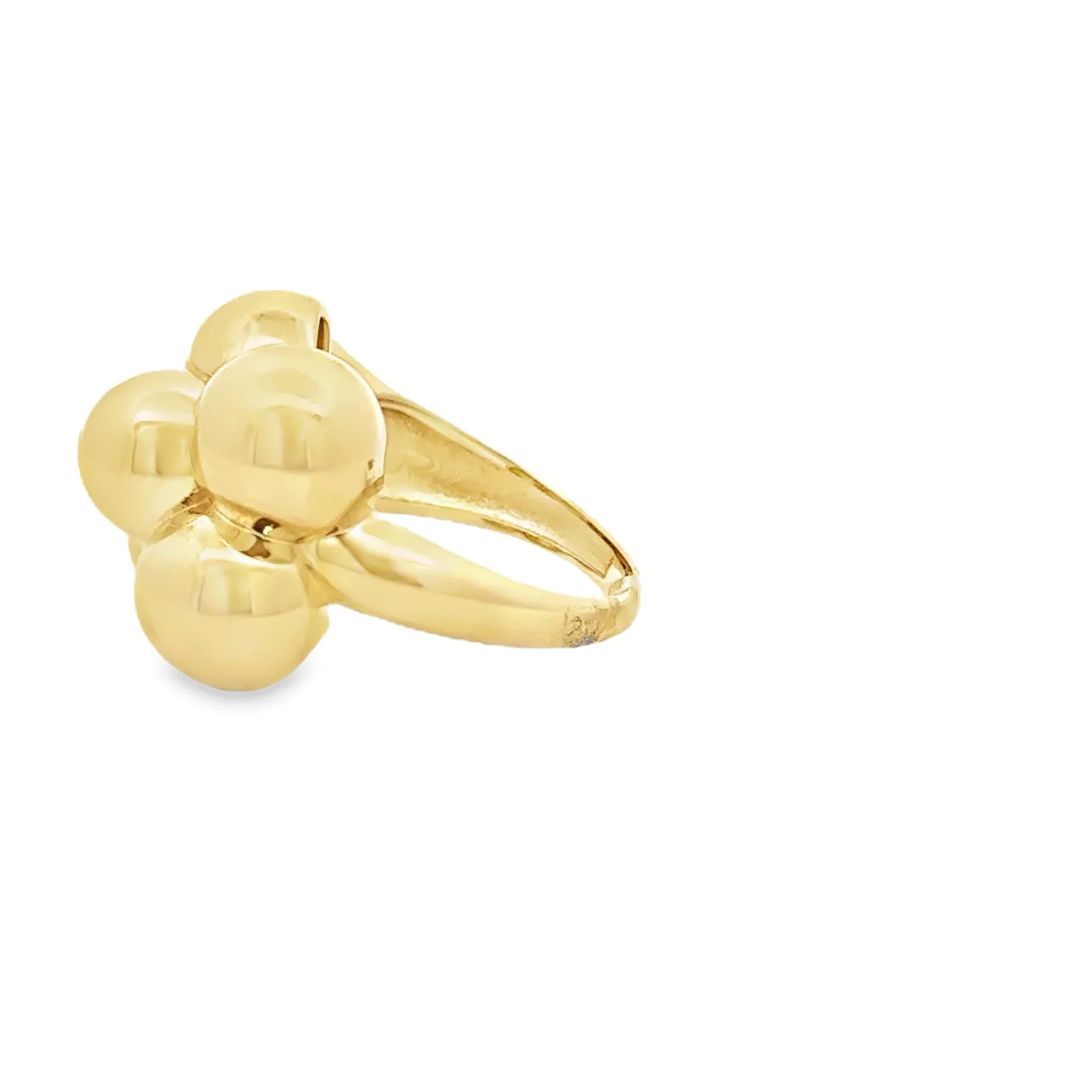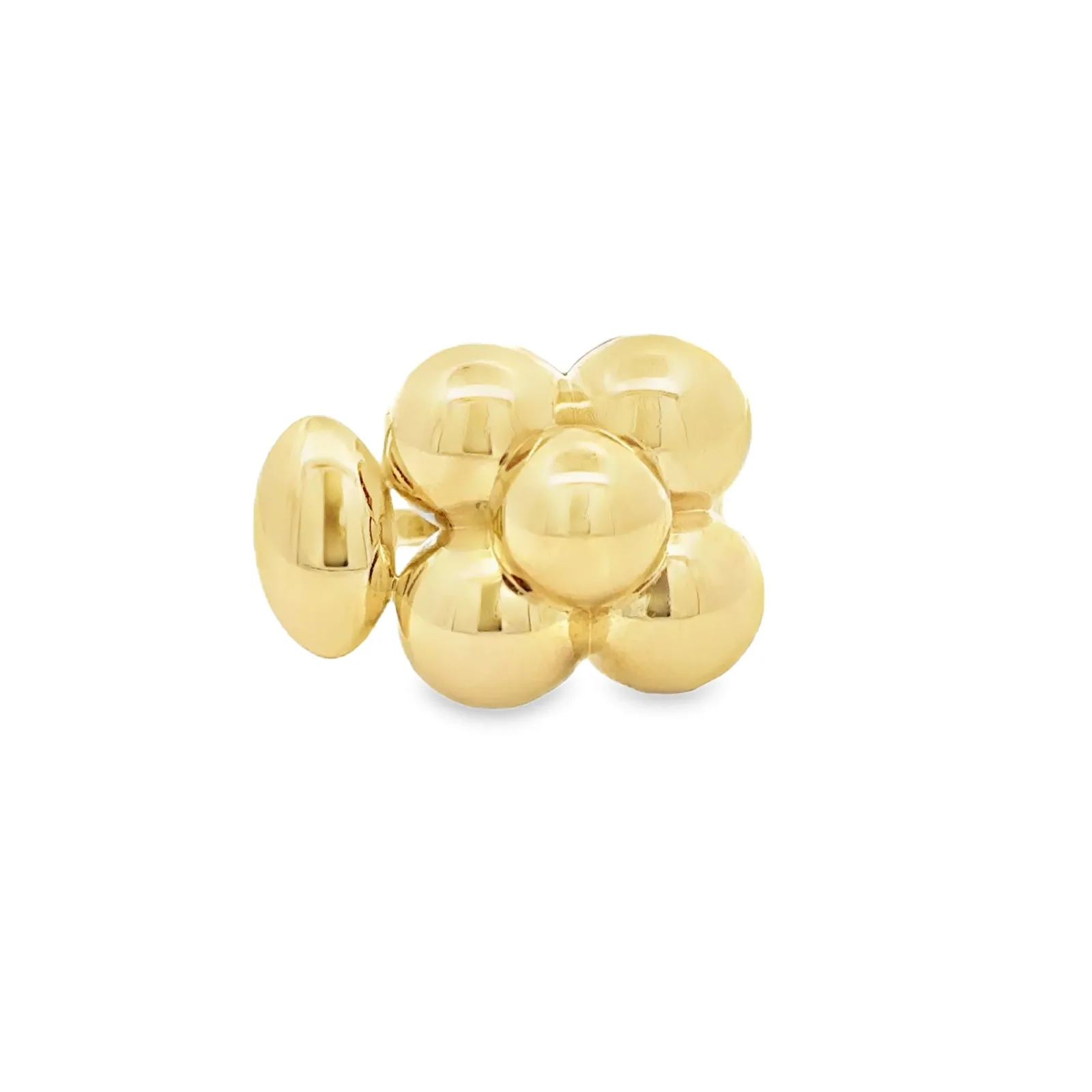 This exquisite gold ring features a unique cluster of polished spheres, creating a bold yet elegant statement piece. Perfect for adding a touch of sophistication to any outfit, this ring is a testament to timeless style and craftsmanship.