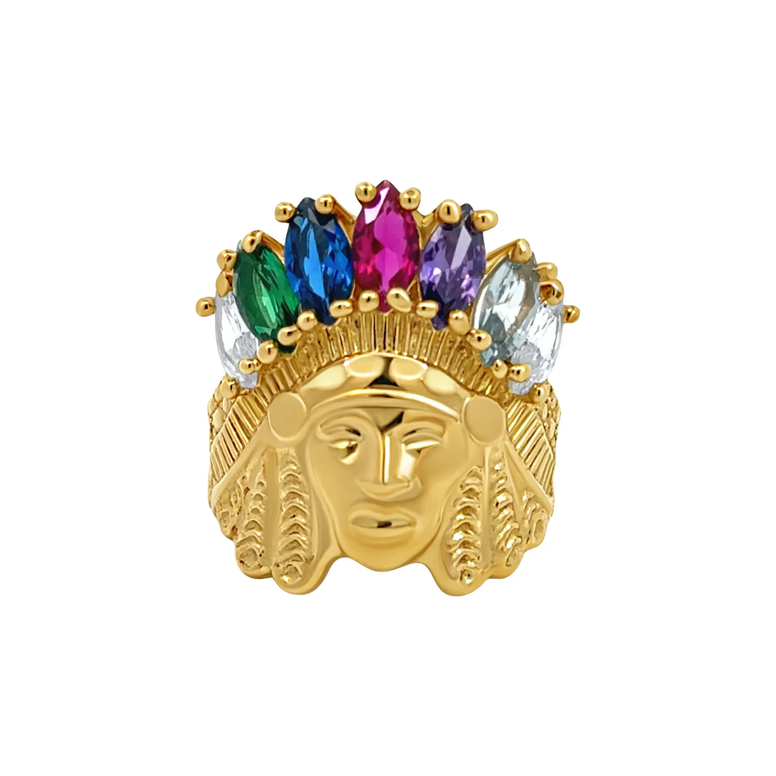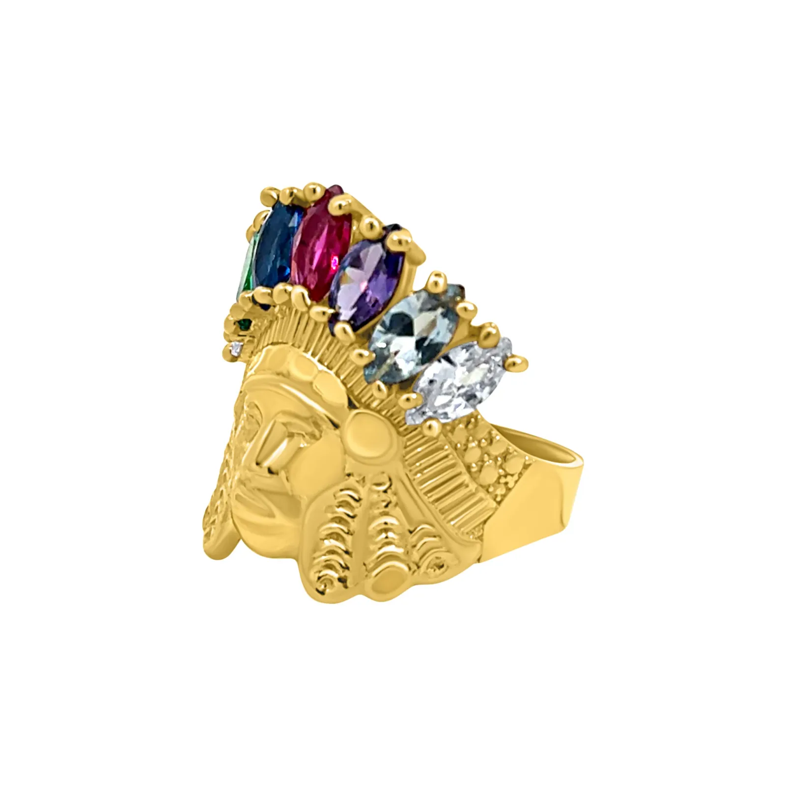 Multicolor Chief Headdress Ring en Oro 10K. Diseño sólido con acabado pulido. Comodidad y elegancia para uso diario. Hecho a mano en Miami.