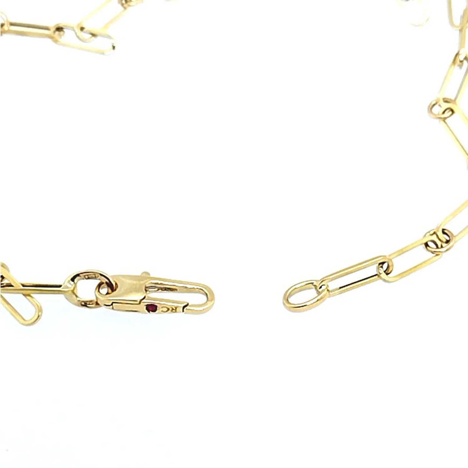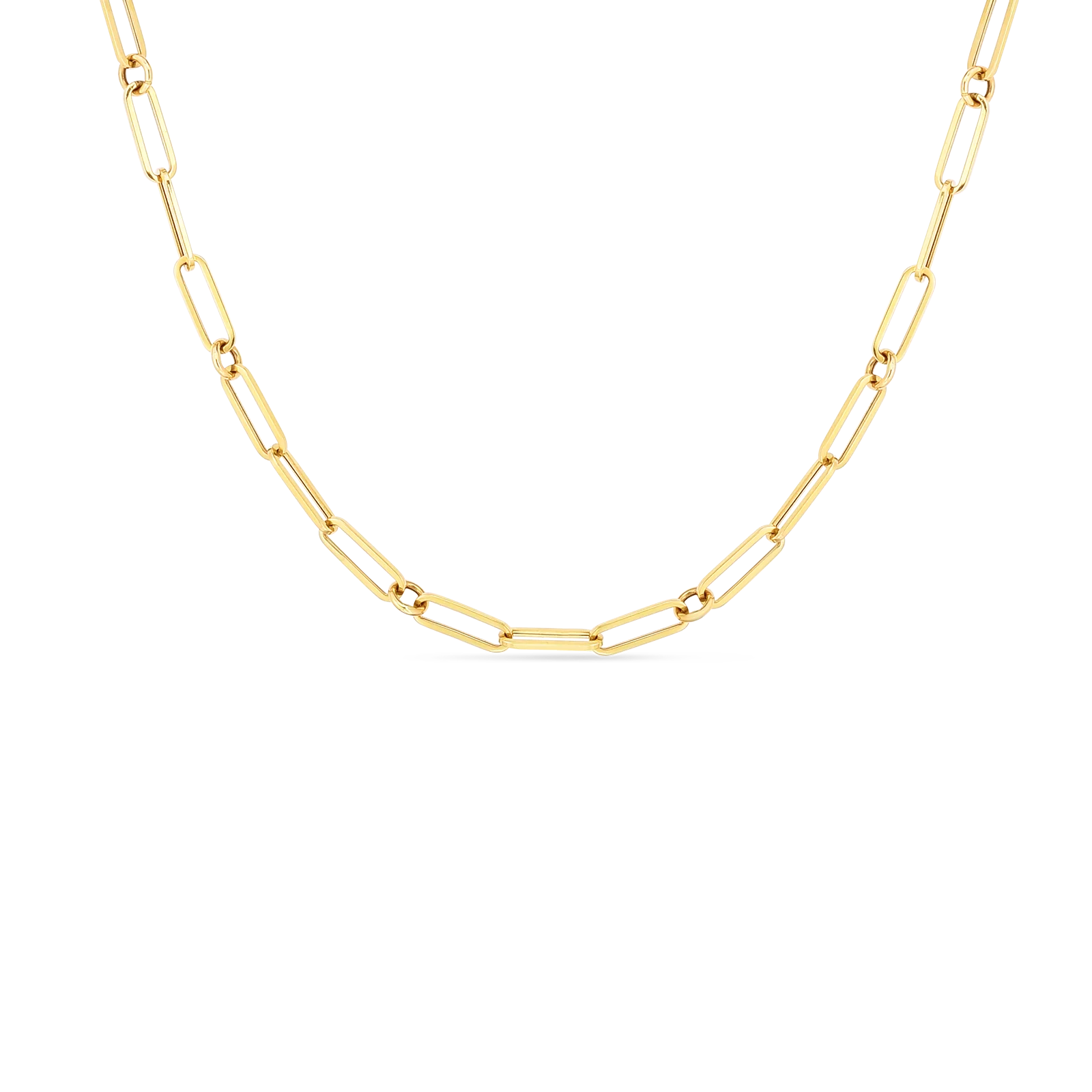 This best-selling Roberto Coin paperclip link necklace is crafted in 18 Karat yellow gold and has an adjustable length up to 17 inches long.
