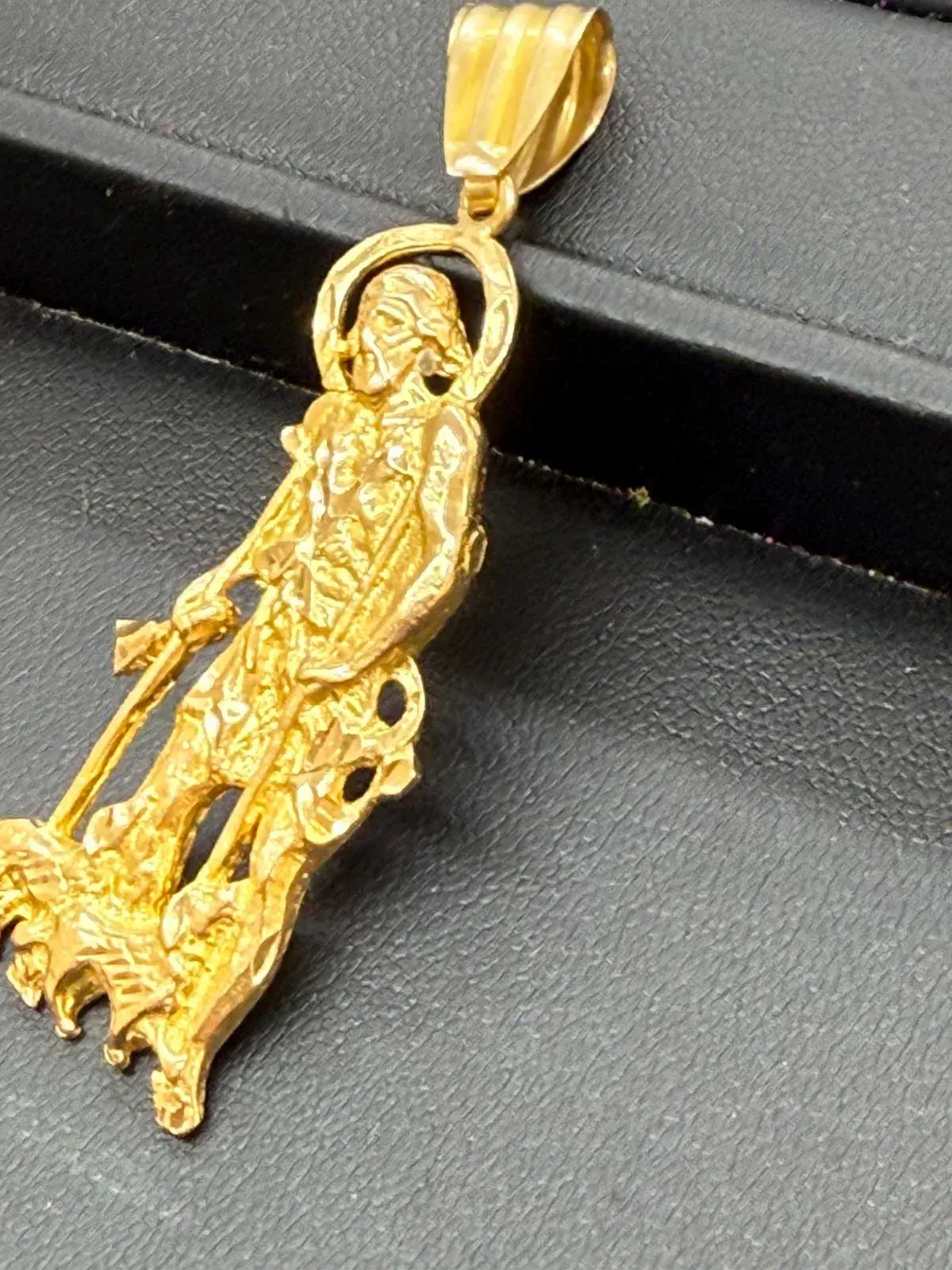 Dije de San Lazaro en pie de oro de 14 K con un peso de 7.8 gramos