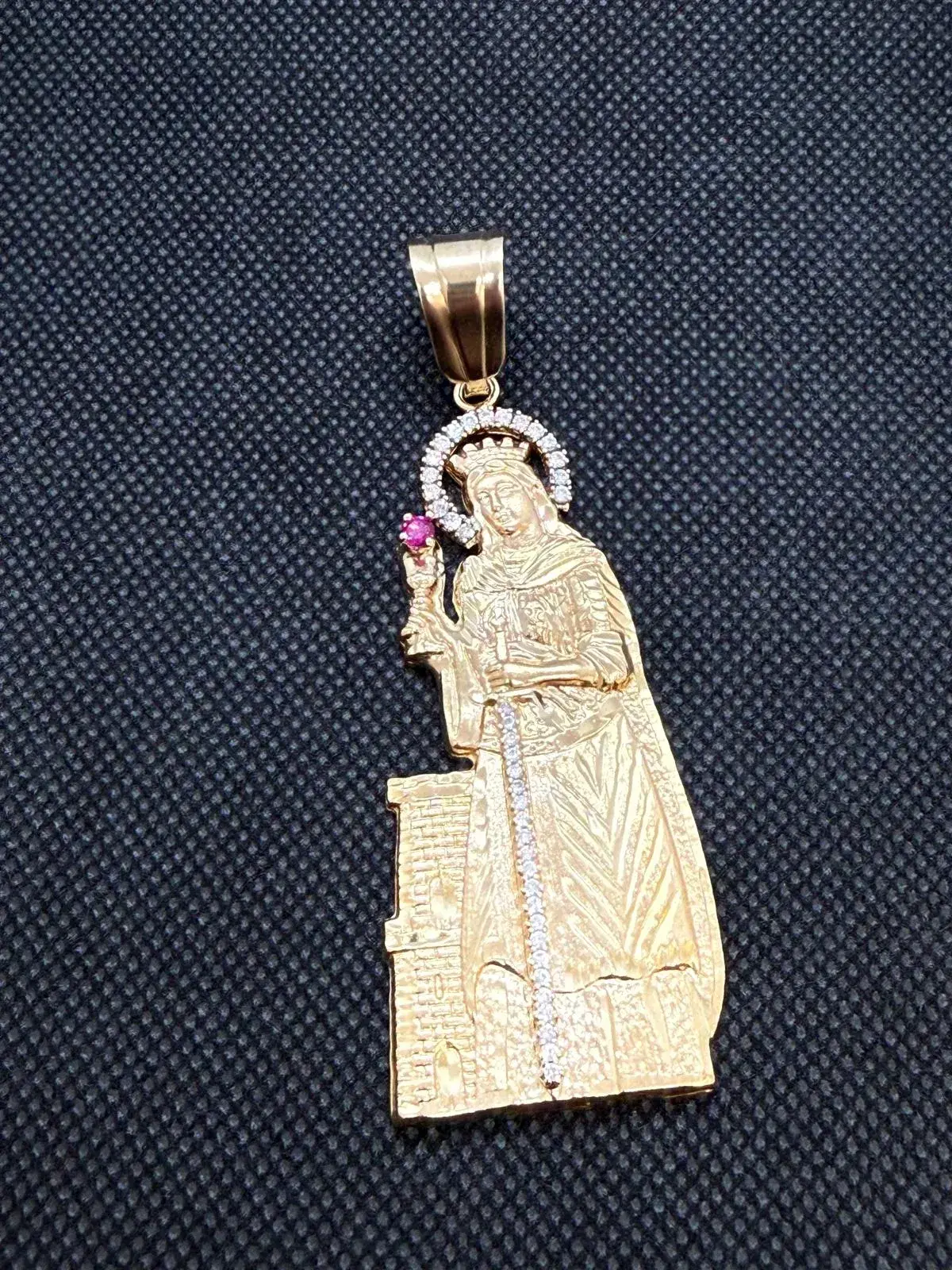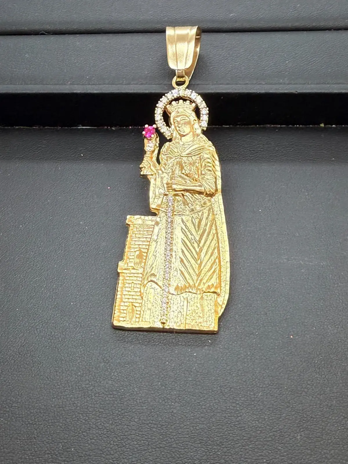 Dije de Santa Bárbara en Oro 10K — dije con diseño detallado en oro 10K sólido y acabado pulido brillante. Ideal para personalizar tu cadena favorita.