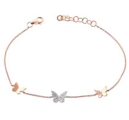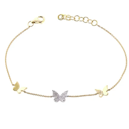 Yellow 14K 0.11Ct R/D Diamond Triple Butterfly Bracelet 36 Diamonds